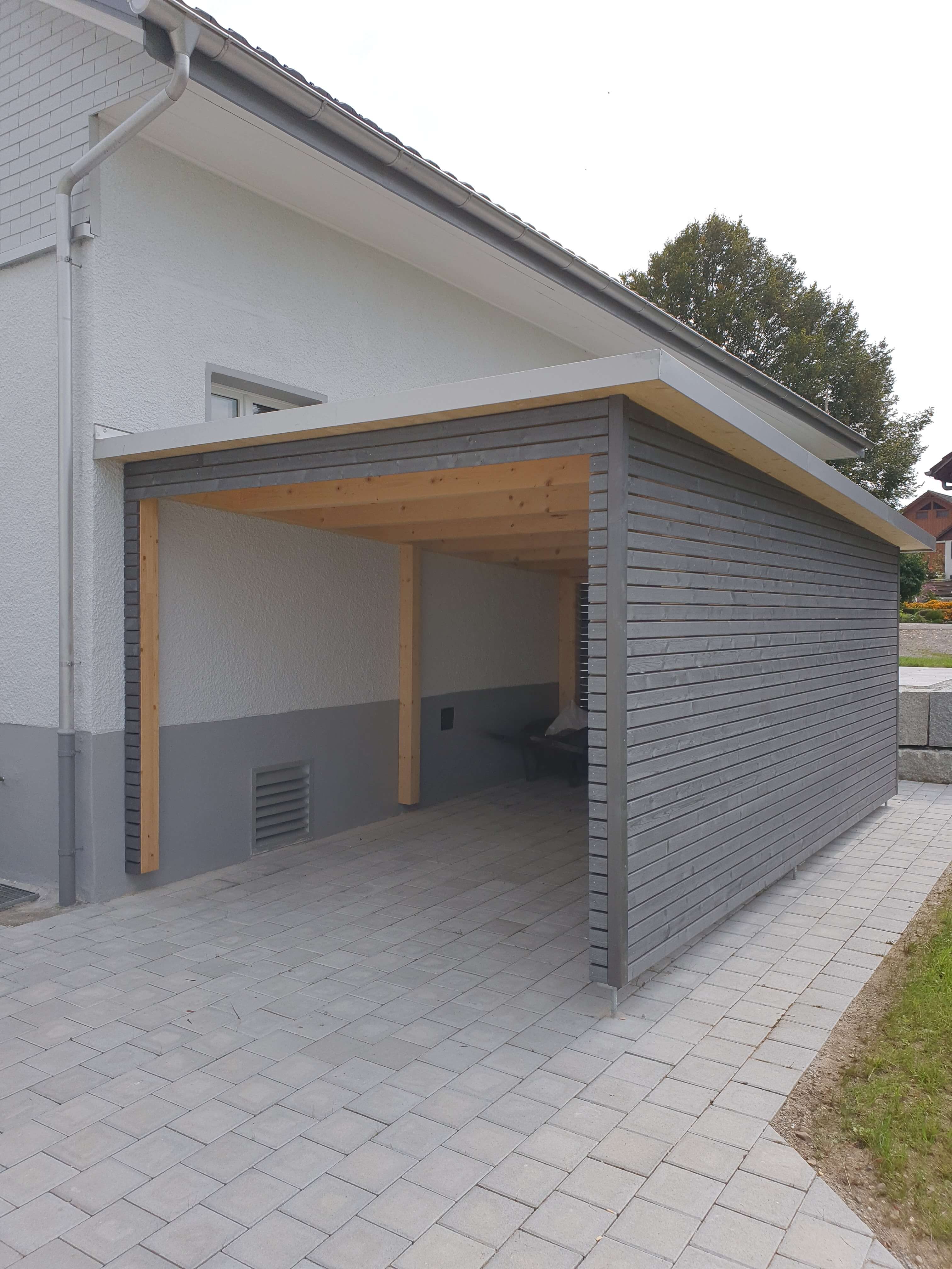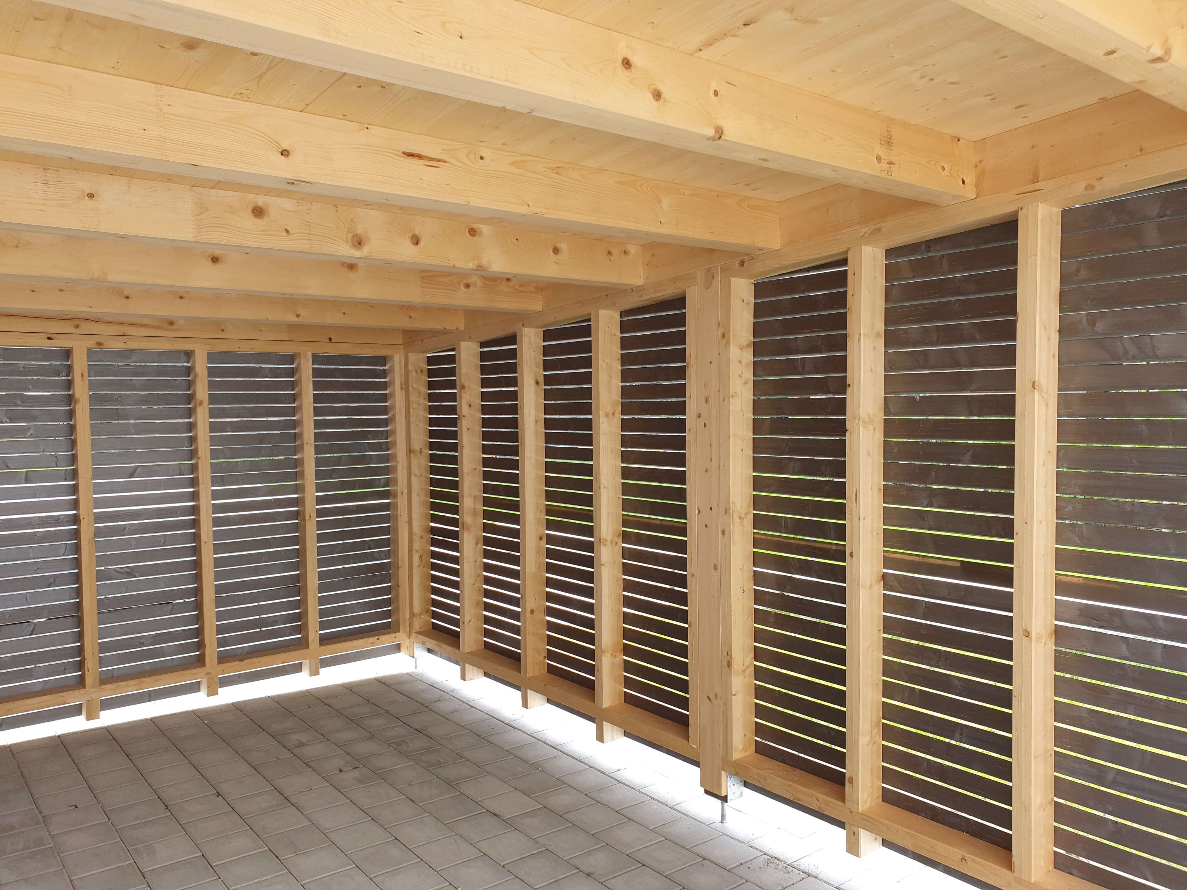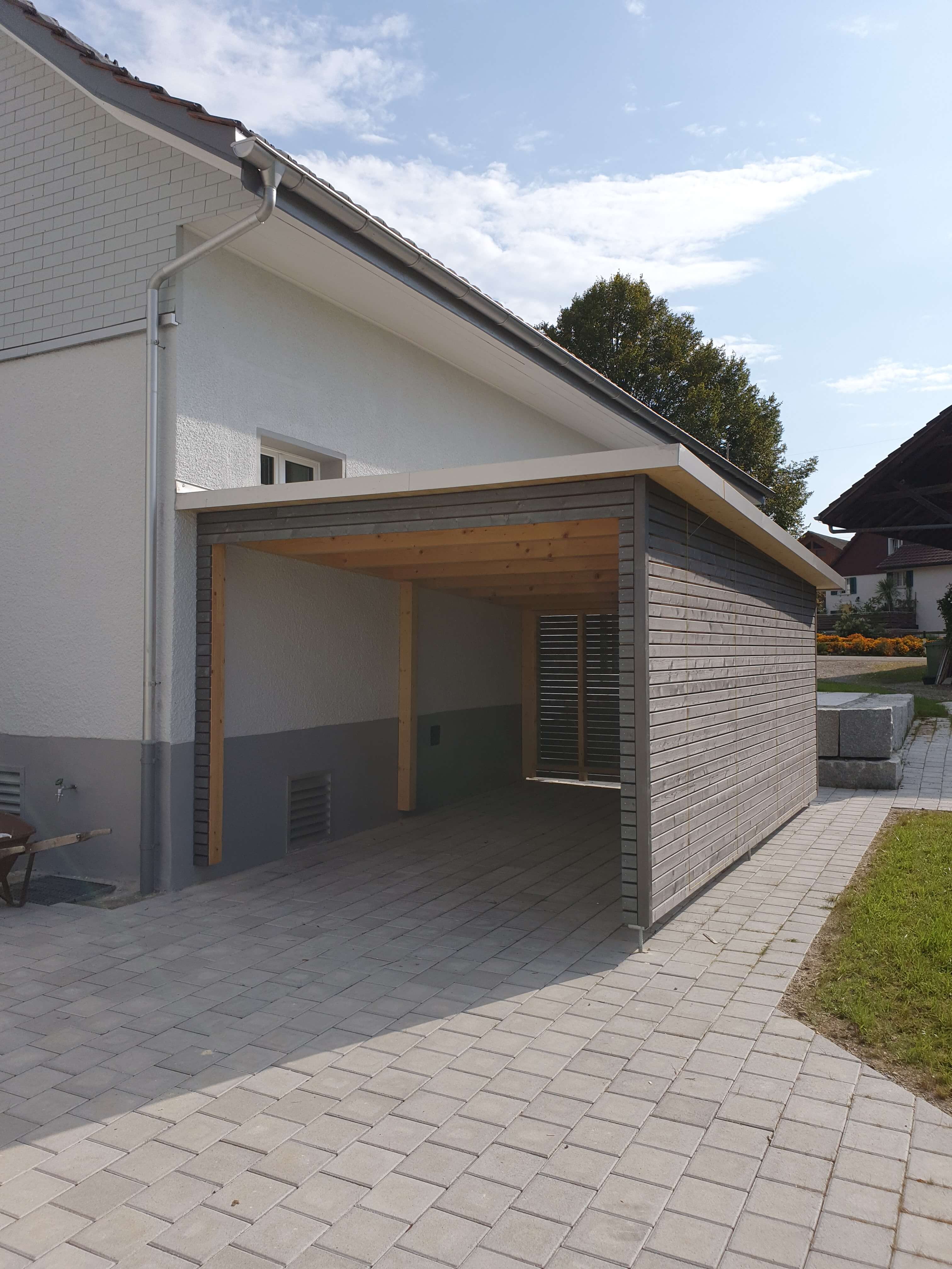 Die Fassade wurde mit einer offenen Rhomboid-Schalung gemacht, die perfekt zum bestehenden Haus passt. Sie wirkt offen, schützt aber trotzdem vor Regen und Schnee.
