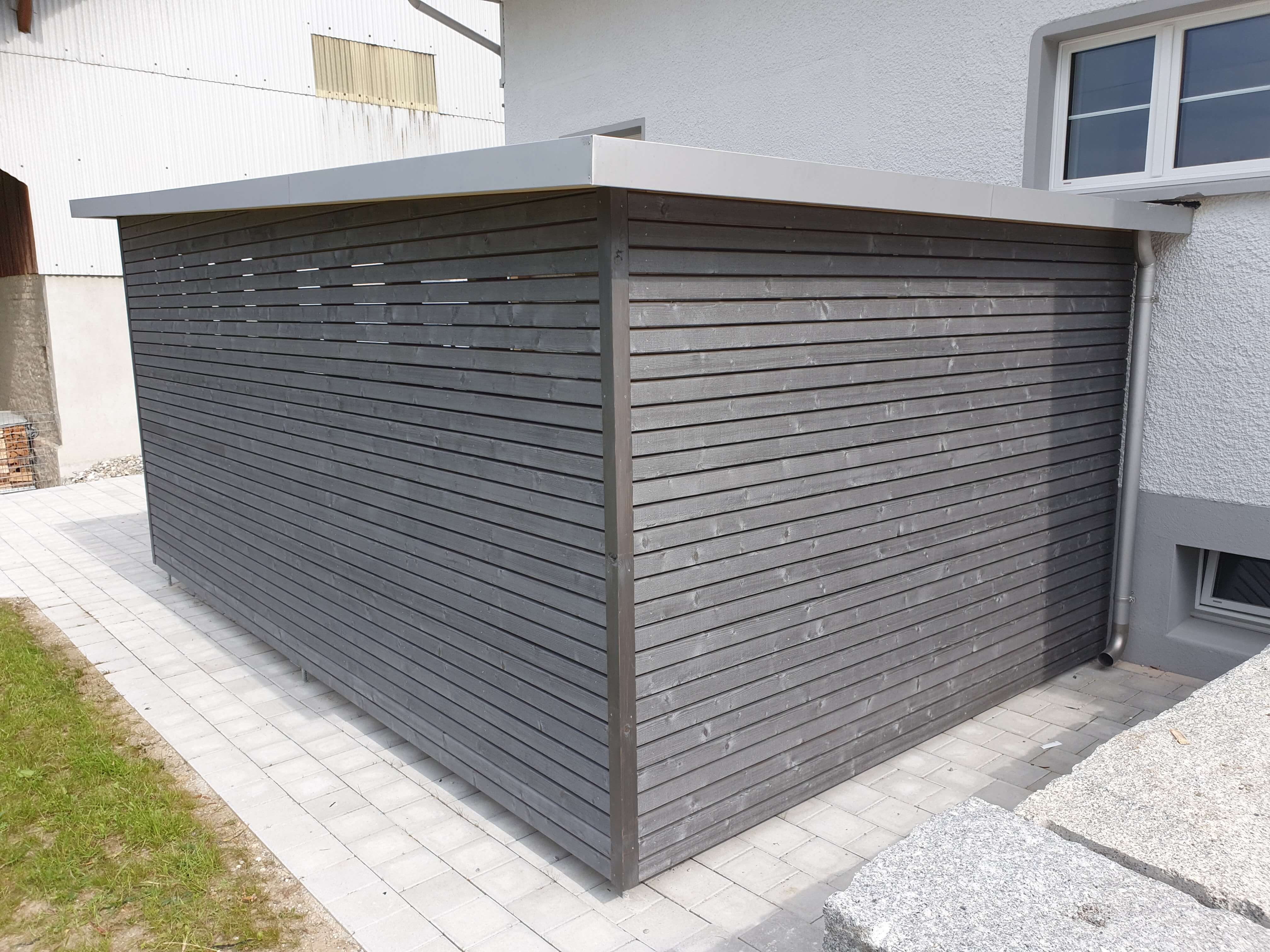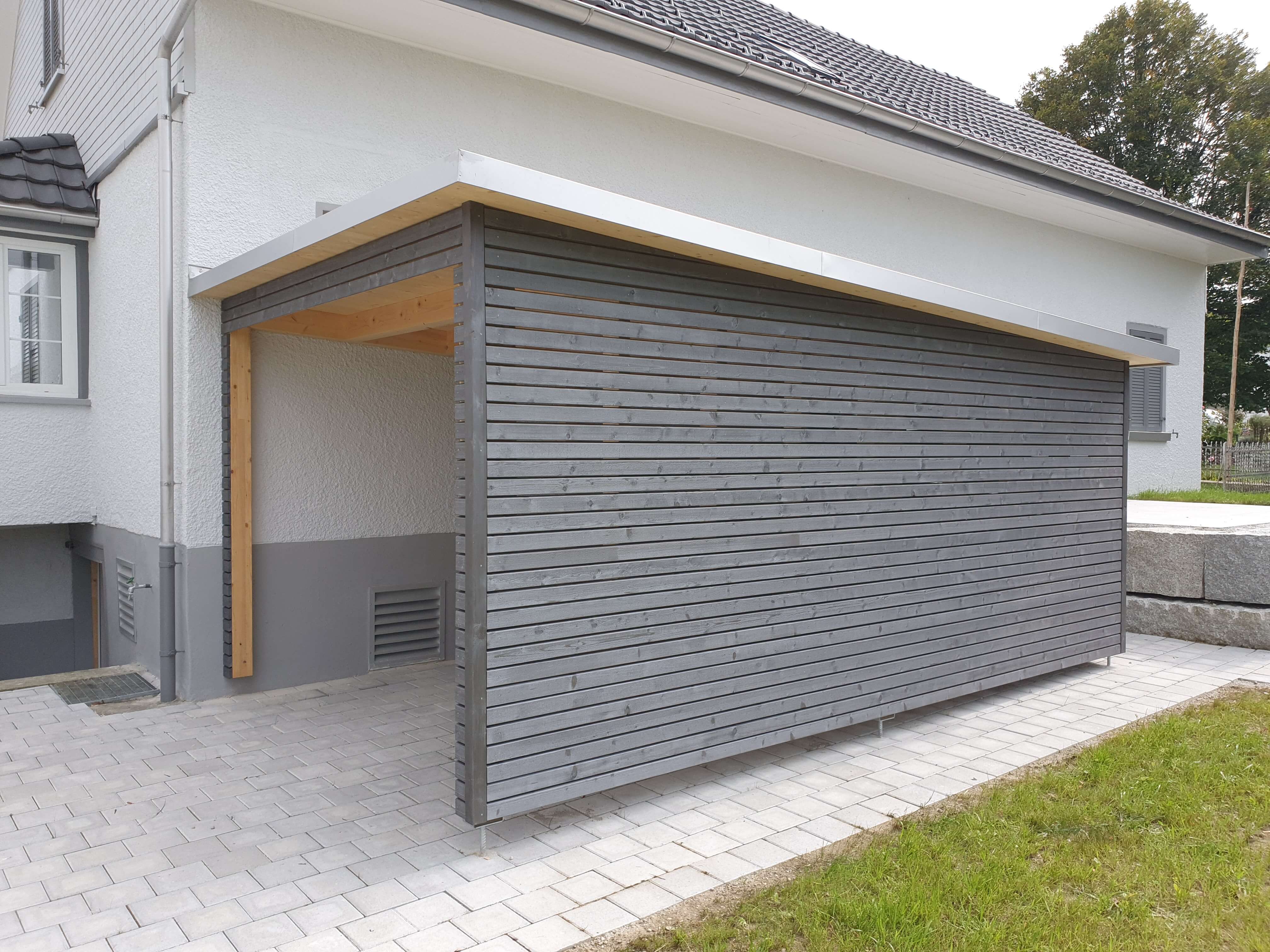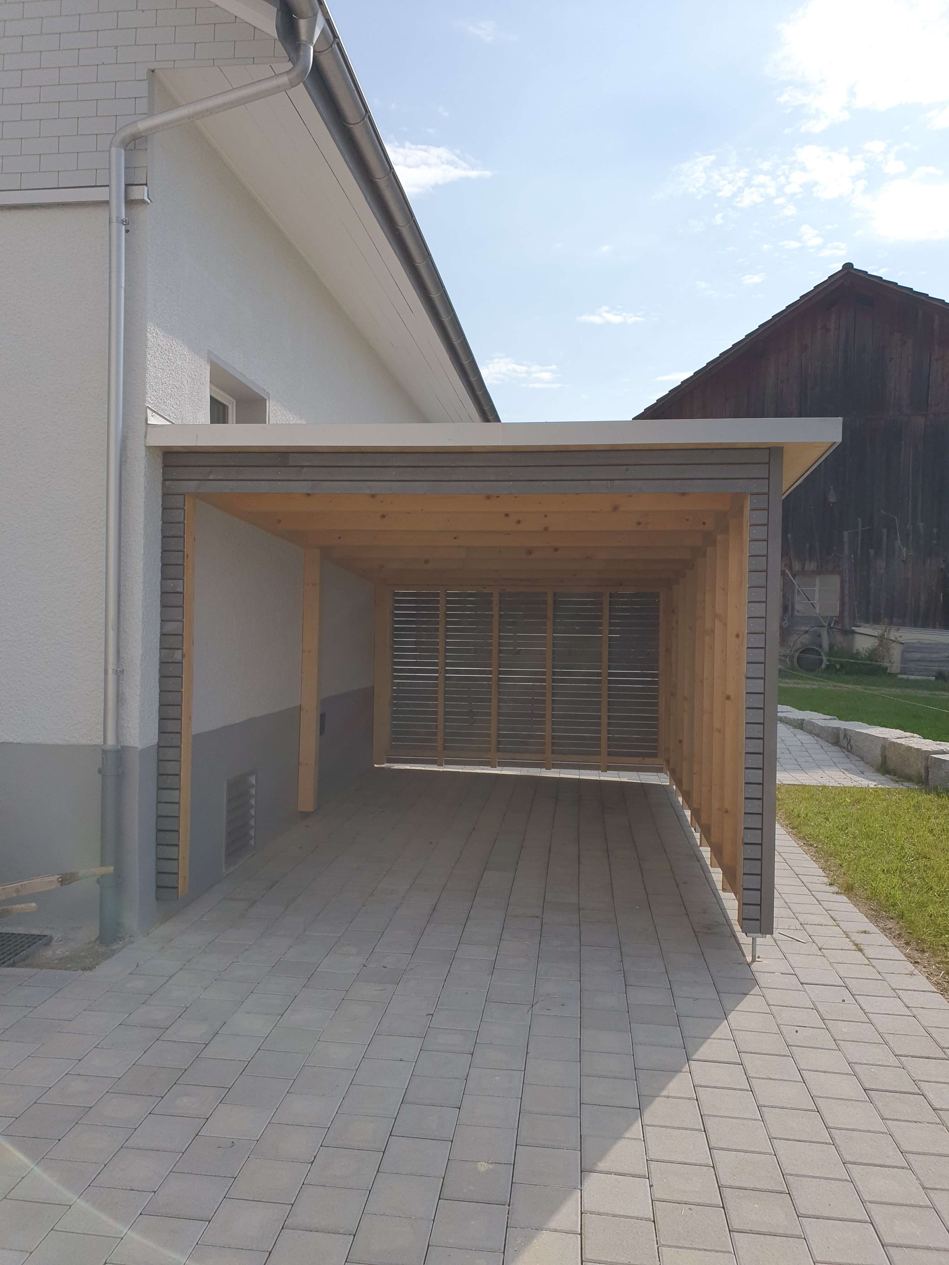 Die Fassade wurde mit einer offenen Rhomboid-Schalung gemacht, die perfekt zum bestehenden Haus passt. Sie wirkt offen, schützt aber trotzdem vor Regen und Schnee.